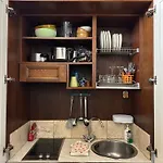 - ❓¿Hay una cocina disponible en el apartamento para uso de los huéspedes?Sí, el apartamento está equipado con una pequeña cocina y ofrece también una nevera, menaje de cocina y cristalería.